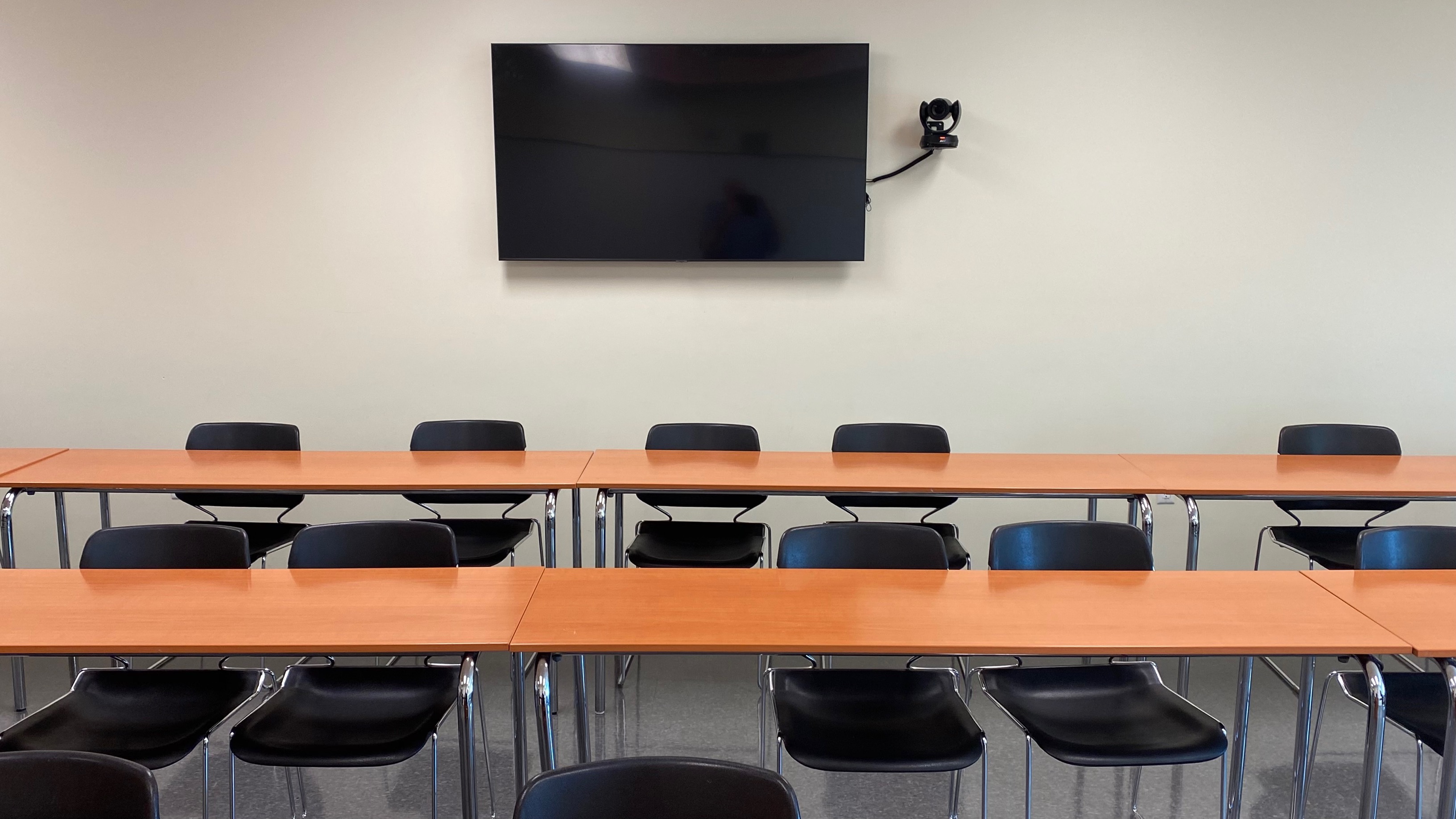 Le D223 est situé au 2e étage du campus de Rouyn-Noranda. Ce local est principalement utilisé pour les cours offerts par l'école de Génie. Il est équipé de caméras et de microphones qui permettront l’utilisation d'outils de visioconférence pour les rencontres en comodalité. D’un autre côté, pour faciliter l’enseignement magistral, un grand tableau blanc effaçable à sec se trouve tout juste derrière le podium de la personne enseignante. Des prises de courants sont disponibles aux murs, mais il serait préférable d’apporter sa propre recharge pour le branchement d’appareils électroniques.