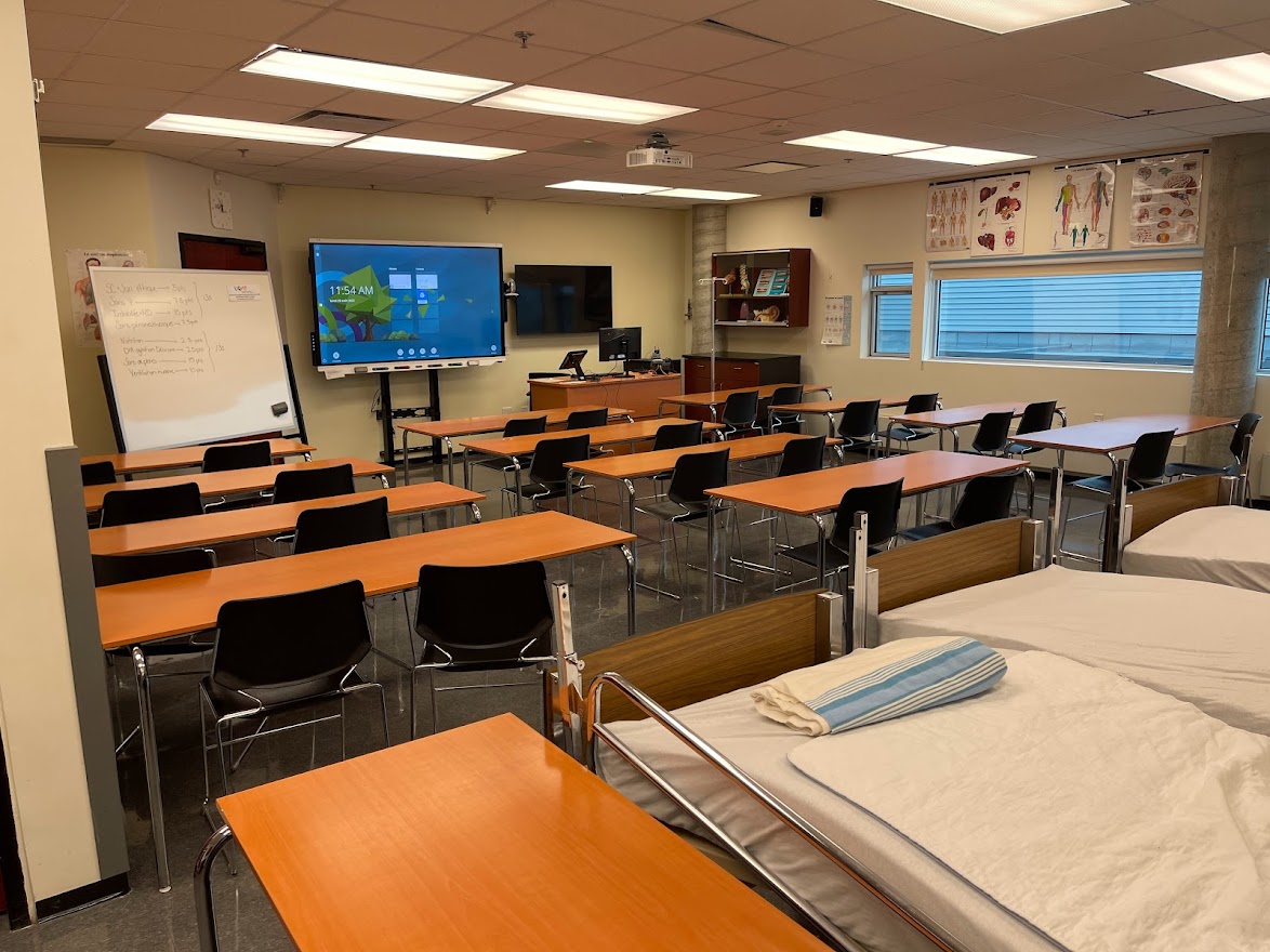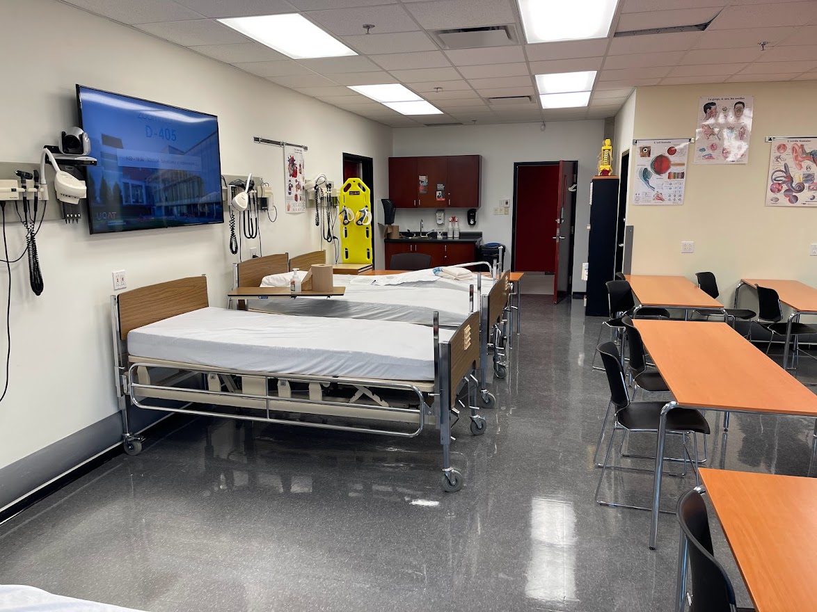 Le local D405 est une salle de classe de type Zoom Room située au 4e étage du campus de Rouyn-Noranda. Il entièrement utilisé par l’UER des sciences de la santé en tant que laboratoire. À cet effet, il dispose de lits d’hôpital et d'appareils médicaux spécialisés. Des écrans et des caméras sont fixés aux murs et pourront être utilisées lors de rencontres en visioconférence.