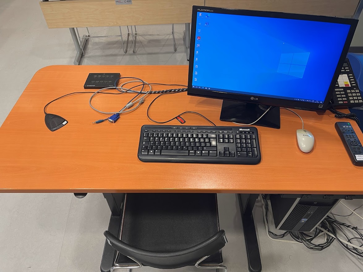 Branchement par port HDMI ou VGA : Un ordinateur est à la disposition des personnes enseignantes. Cependant, si l’utilisation d’un ordinateur personnel est souhaitée, le branchement doit se faire à partir d’un port HDMI ou VGA (prévoir un adaptateur au besoin).