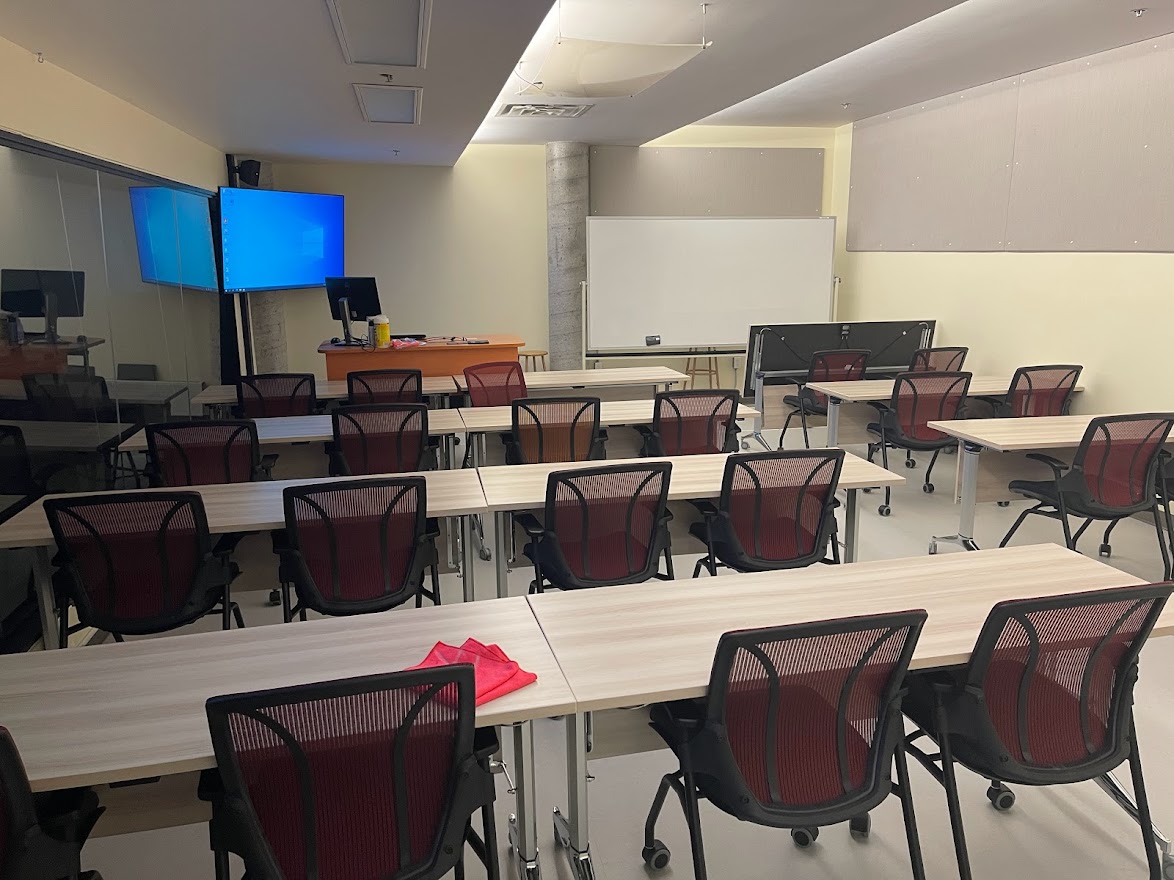 Il n’y a pas de formation spécifique à suivre pour l’utilisation de cette salle. Un accompagnement peut par contre être offert par les techniciens en production numérique pour l’utilisation du studio adjacent.