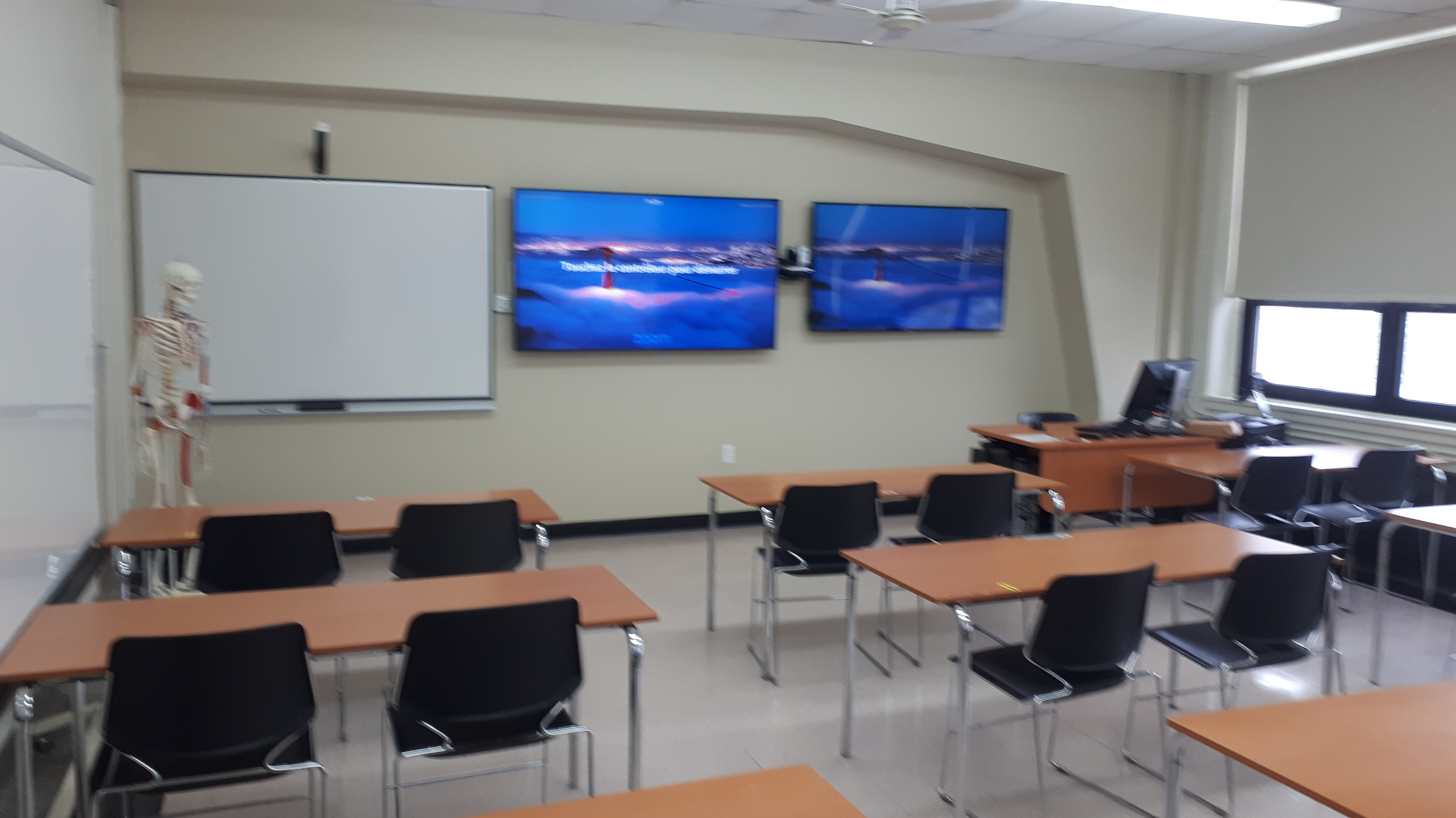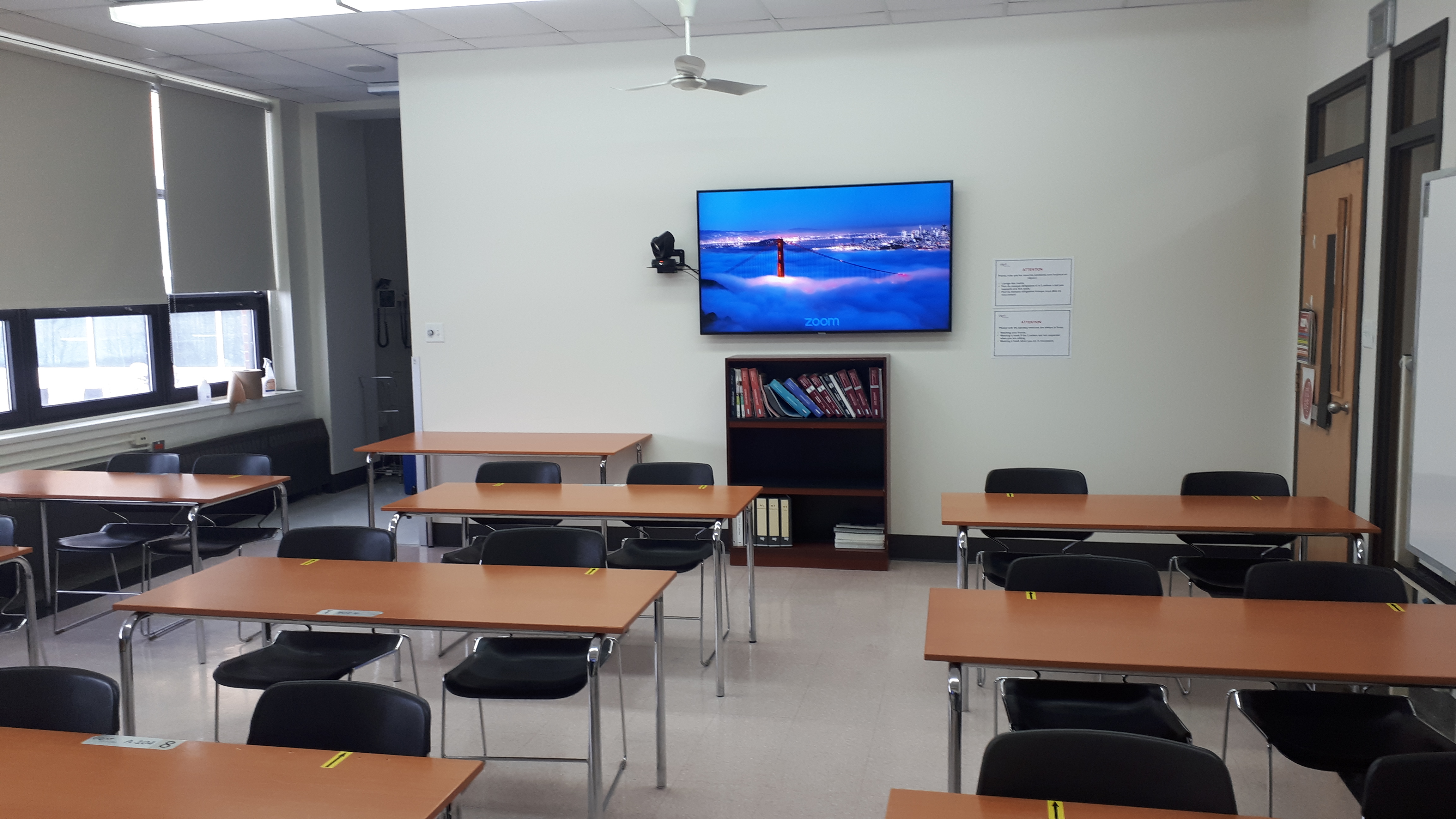 Le 1207 est une salle de type Zoom Room située au 1er étage du campus de Val d’Or. Ce local est conçu spécialement pour le département des sciences de la santé et est utilisé autant comme salle de classe que laboratoire. Des équipements audiovisuels tels que des écrans, des caméras et des microphones permettent la tenue de rencontres en comodalité, par la plateforme Zoom. Dans la partie laboratoire, des équipements spécialisés en santé permettent la mise en pratique des apprentissages. Le mobilier qui est dans le local est amovible et peut être réaménagé selon la planification de l’enseignant·e. Une salle de toilettes se trouve à proximité de ce local.