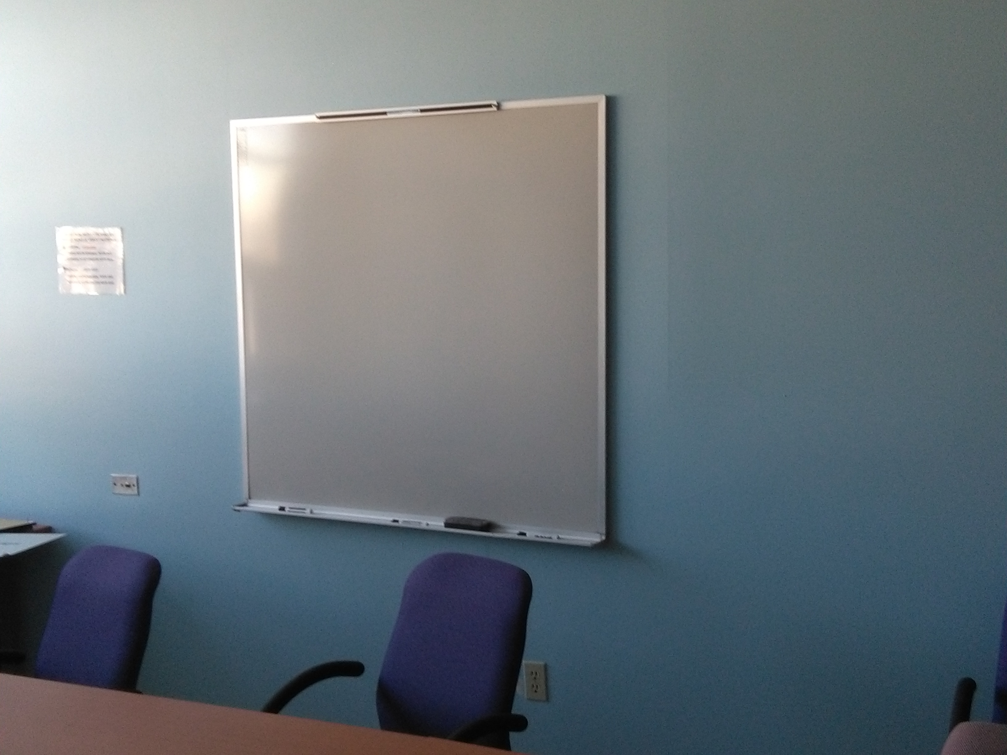 Tableau blanc sec sur le mur de droite du local.