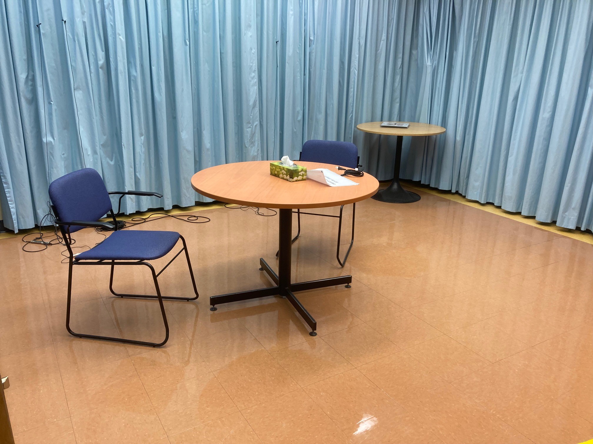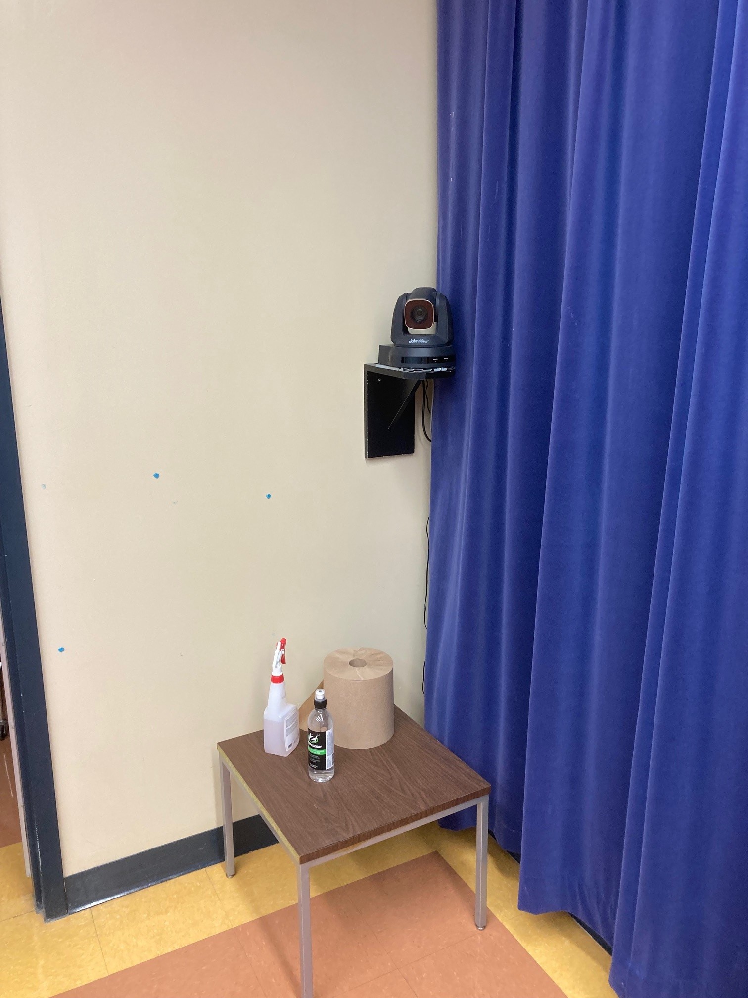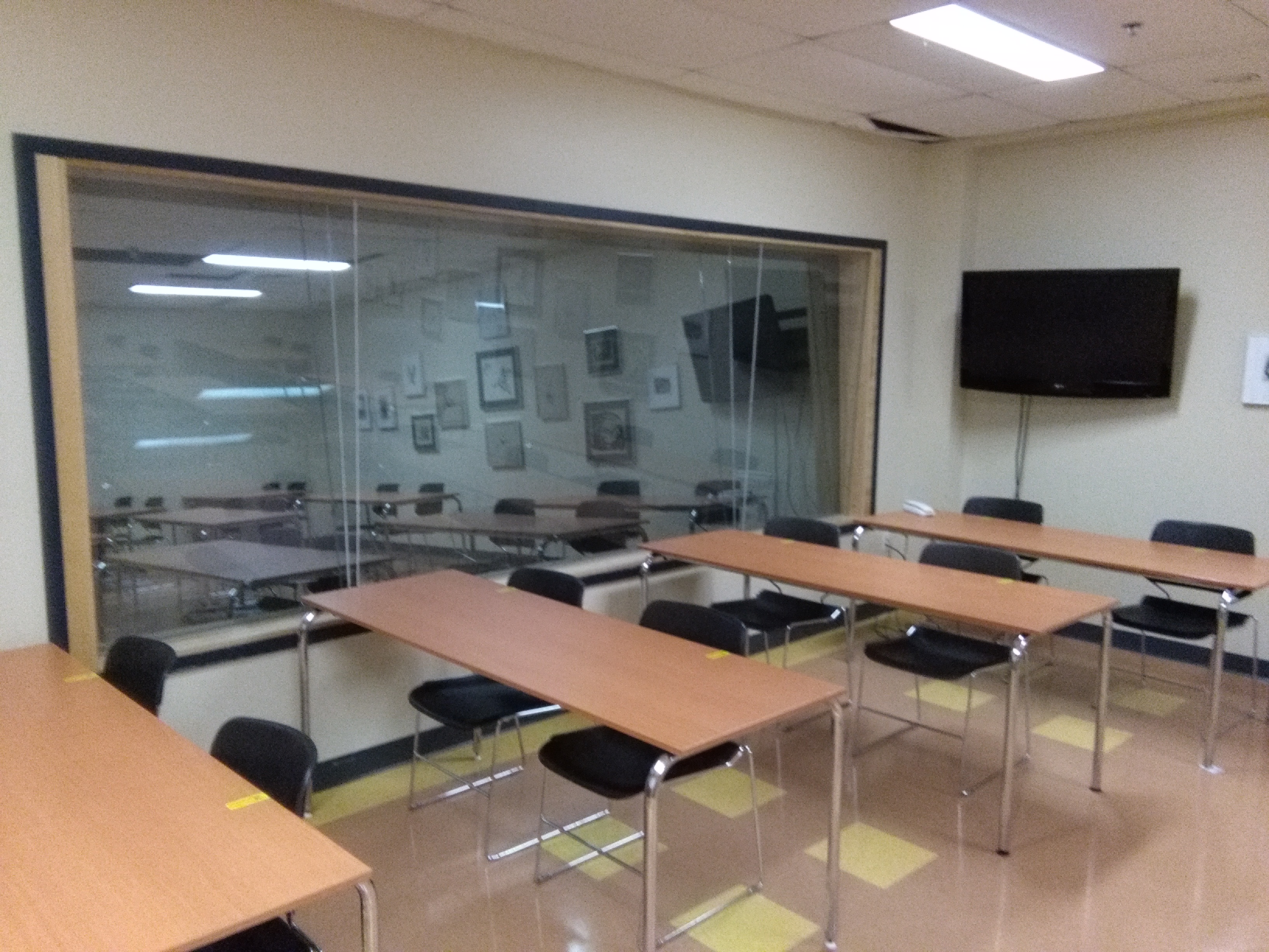 Local relié au 3201 permettant l’observation. Le mur sans teint, un téléviseur (caméra) et un intercom permettent la liaison avec le local 3201.
