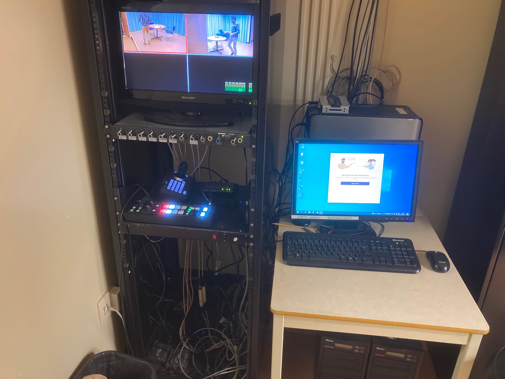 Branchement par port VGA ou HDMI : Un ordinateur est à disposition dans le local. Cependant, si l’utilisation d’un ordinateur personnel est souhaitée, le branchement doit se faire à partir d’un port VGA ou HDMI (prévoir un adaptateur au besoin).