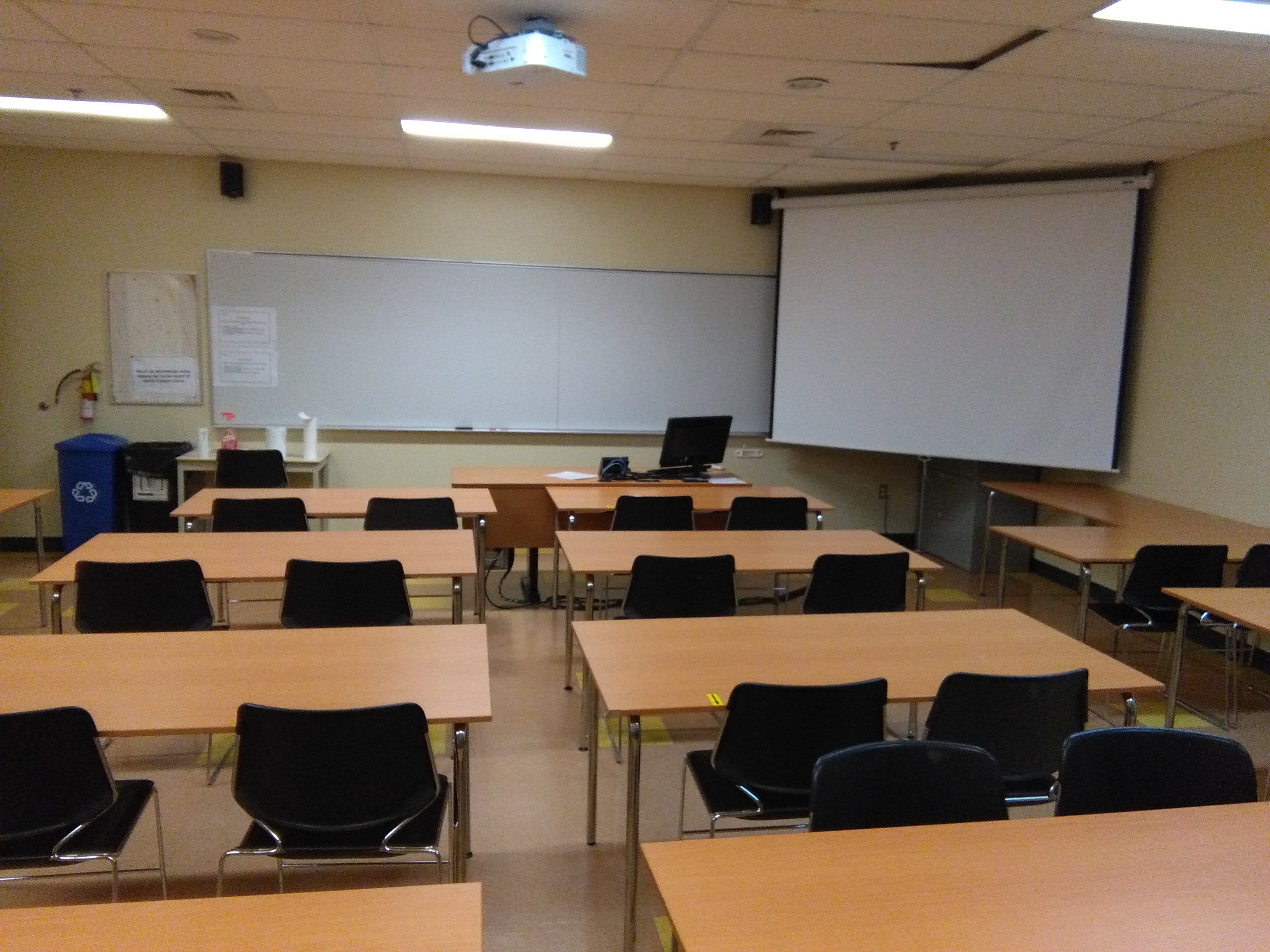 Local d’enseignement muni d’un projecteur et d’une toile pour les présentations.