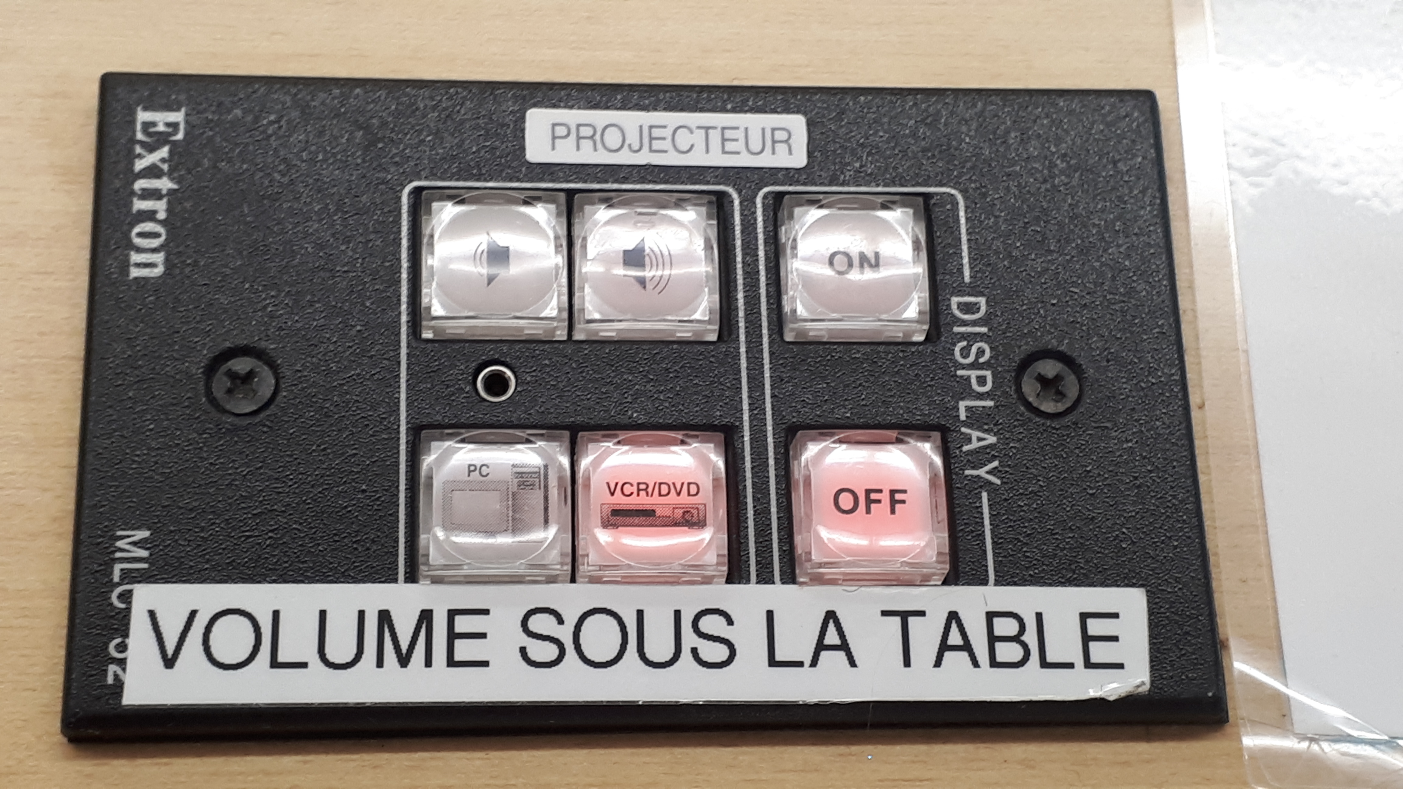 ![]() Volume sous la table de l’enseignant.e | ![]() Contrôle sur le bureau de l’enseignant.e |