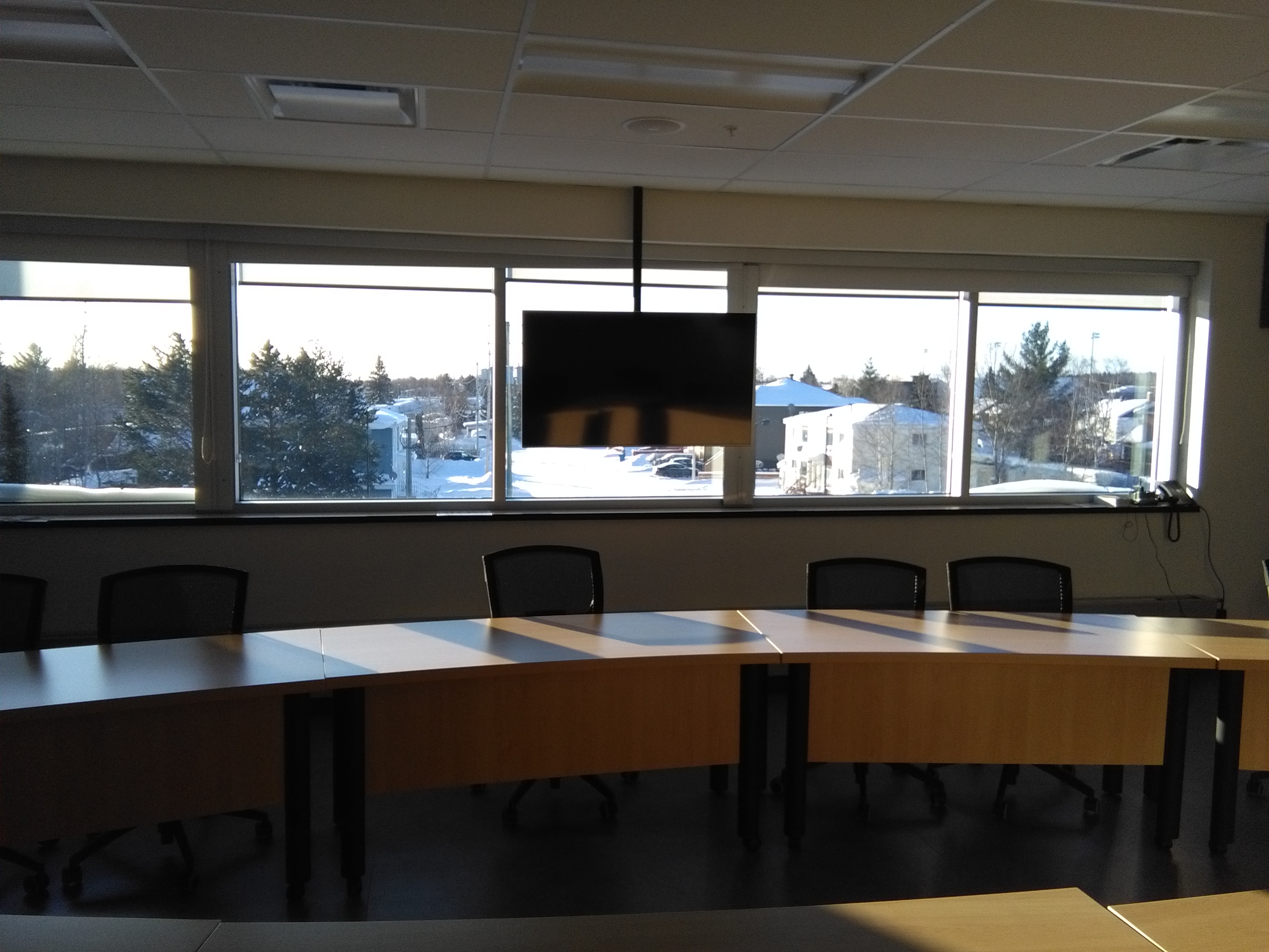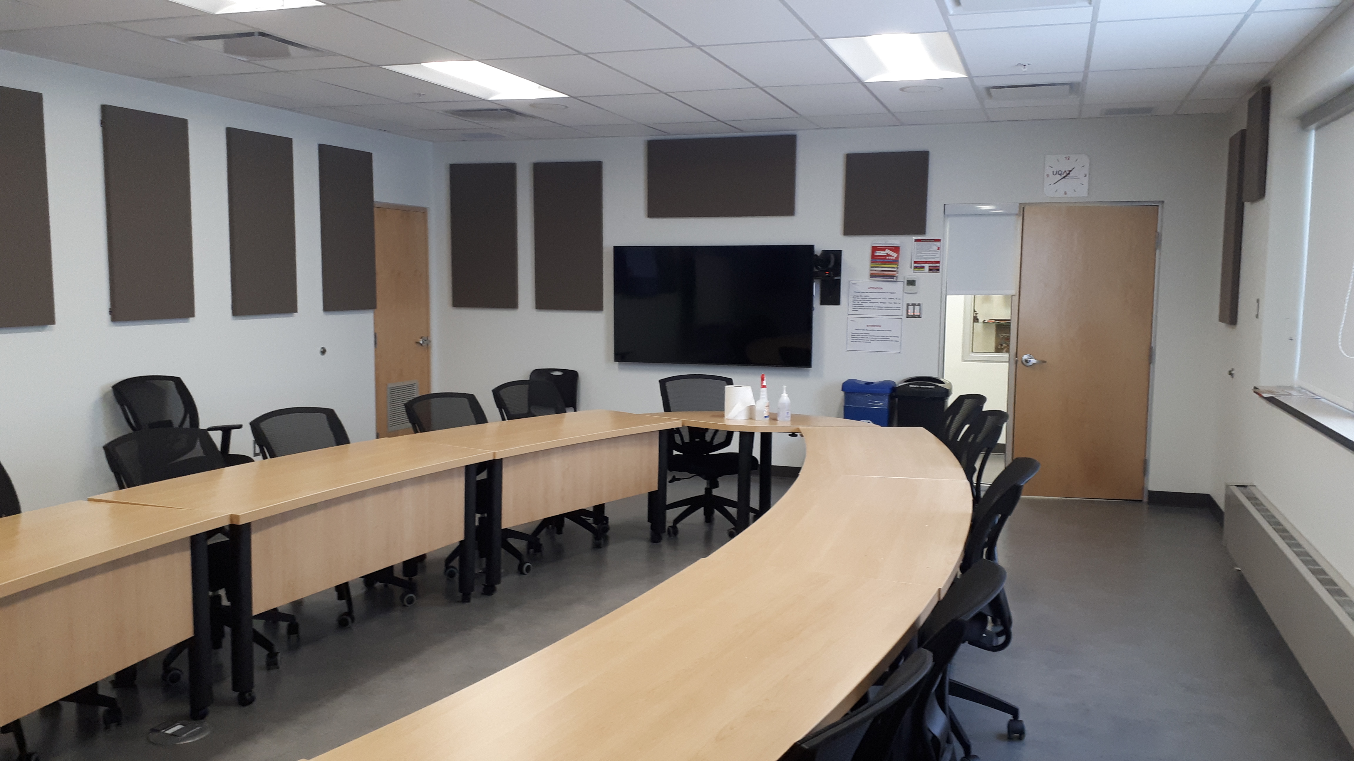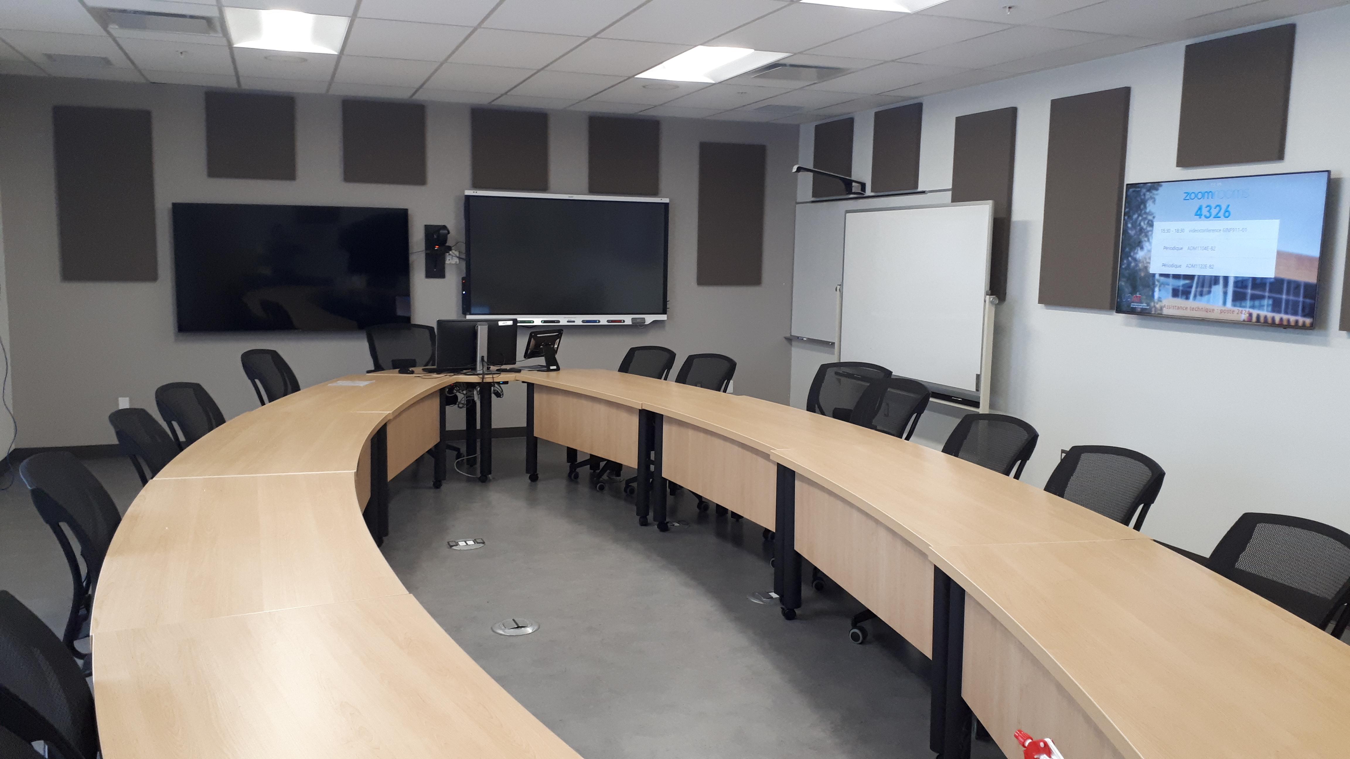 Local muni de quatre téléviseurs, d’un TNI, d’un tableau blanc avec Kaptivo, d’un tableau blanc sec sur roulettes et d’une tablette (IPAD) pour le contrôle des rencontres Zoom.