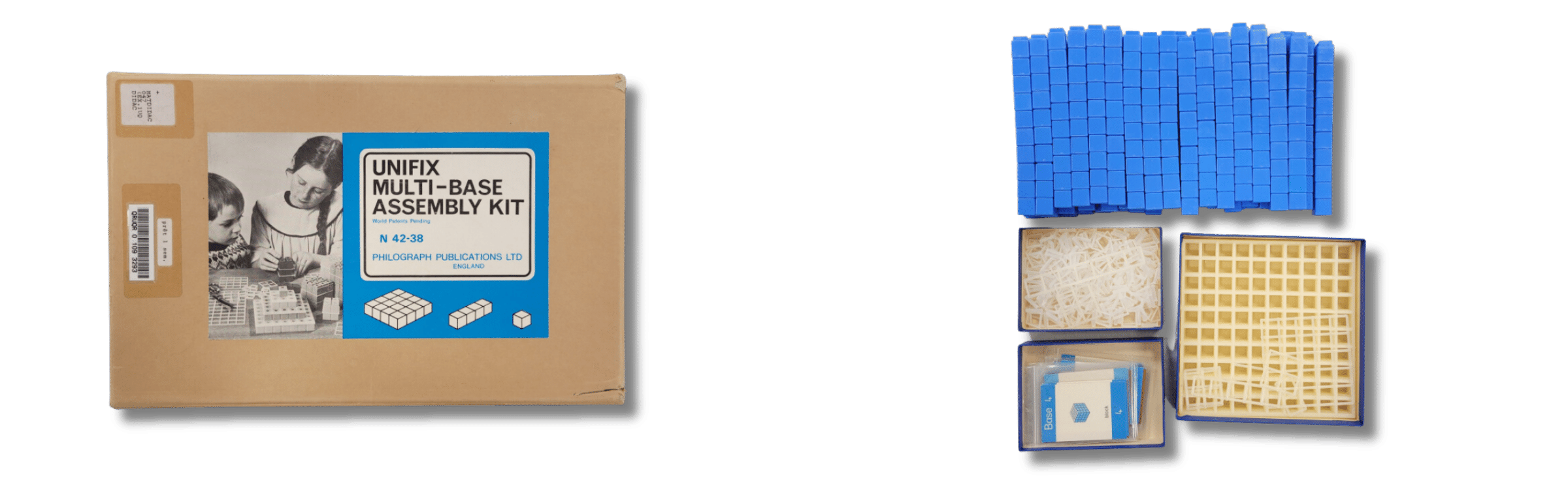 Plateaux emboîtables à dix cases servant à la compréhension du système base 10 et des concepts d’addition et de soustraction.