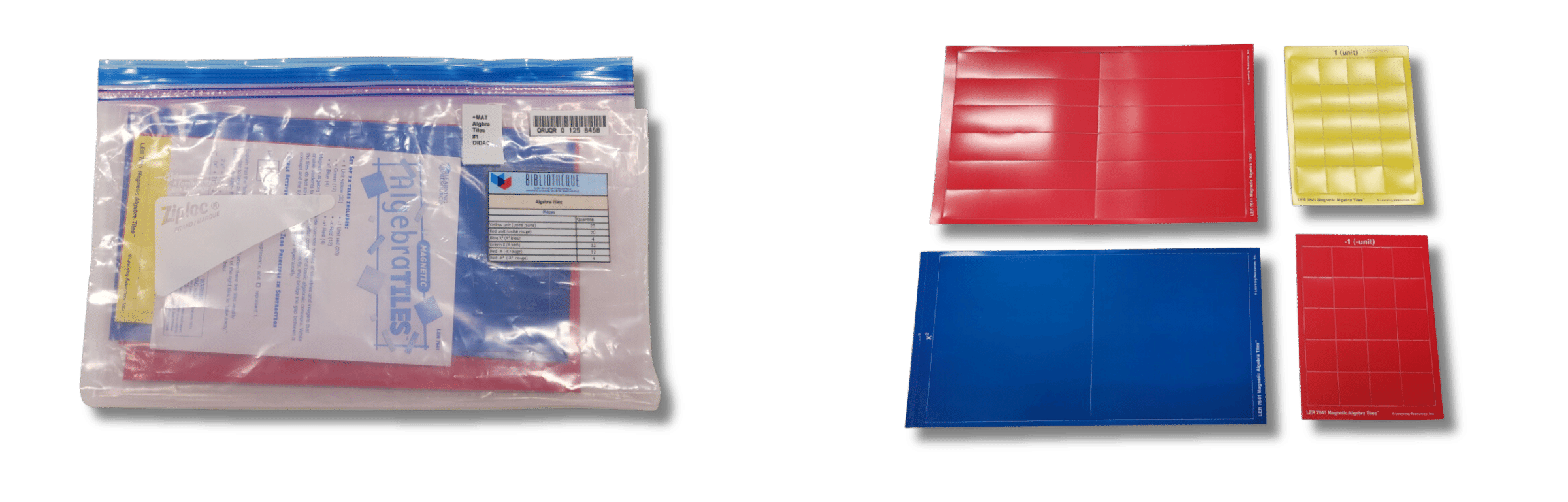 20 tuiles magnétiques servant à la compréhension de l’algèbre.