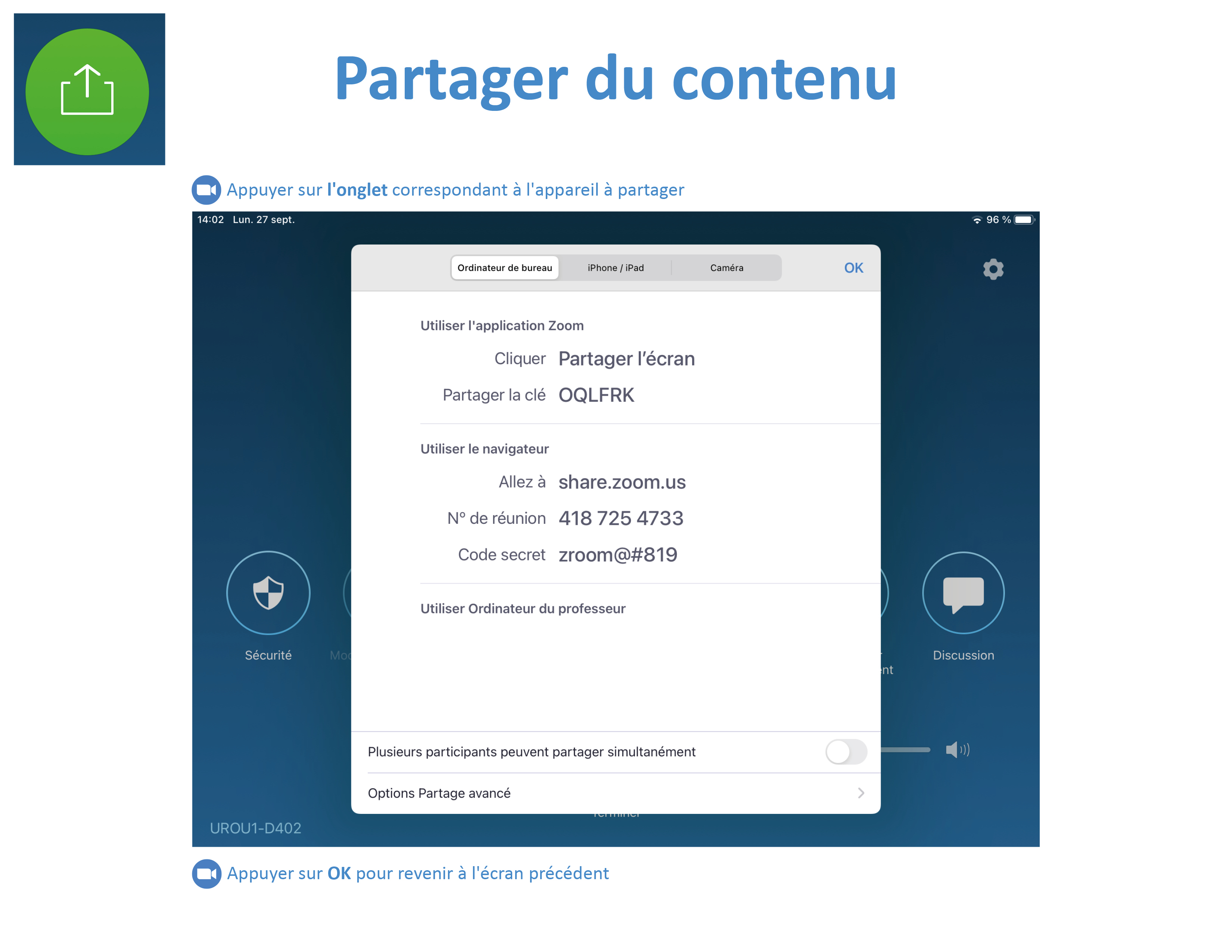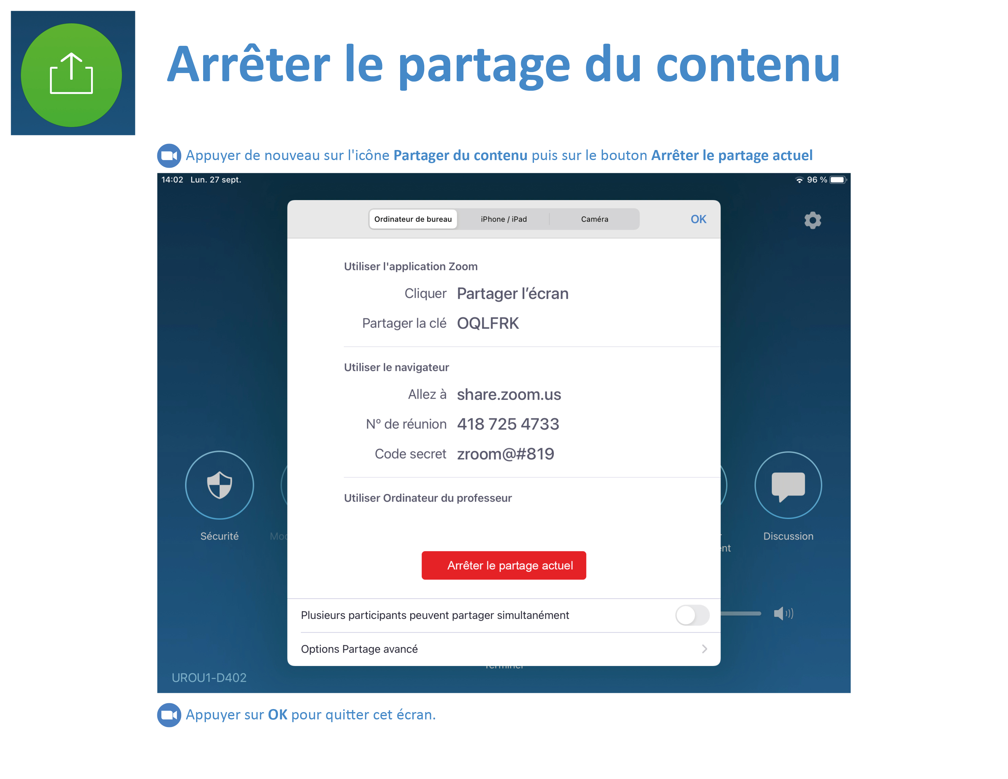 La documentation suivante est la version numérique du guide disponible dans les salles de classe Zoomrooms.