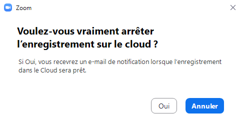 4- Une fenêtre vous demandera de confirmer l’arrêt de l’enregistrement, en appuyant sur “oui”. |