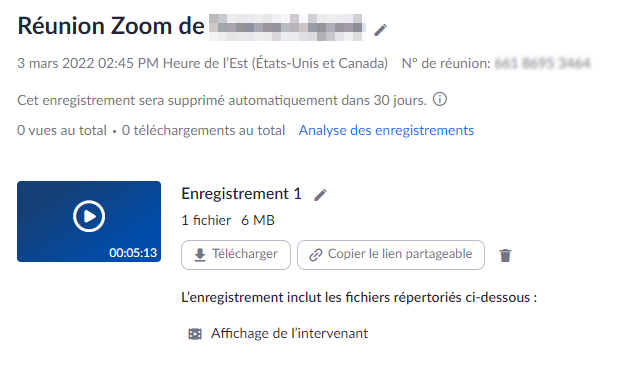 Procédure pour récupérer un enregistrement Zoom (cloud de Zoom) |