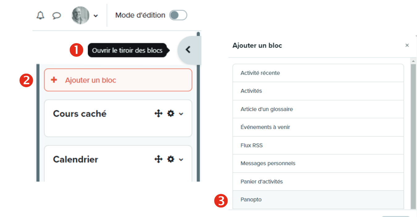 Étape 1 - Créer un dossier Panopto du cours (bloc Panopto)