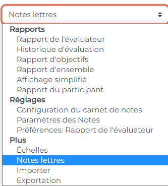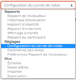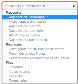 Pour ce faire, dans le menu déroulant, du Carnet de notes, sous Rapports, sélectionnez Rapport de l'évaluateur. ![]() |