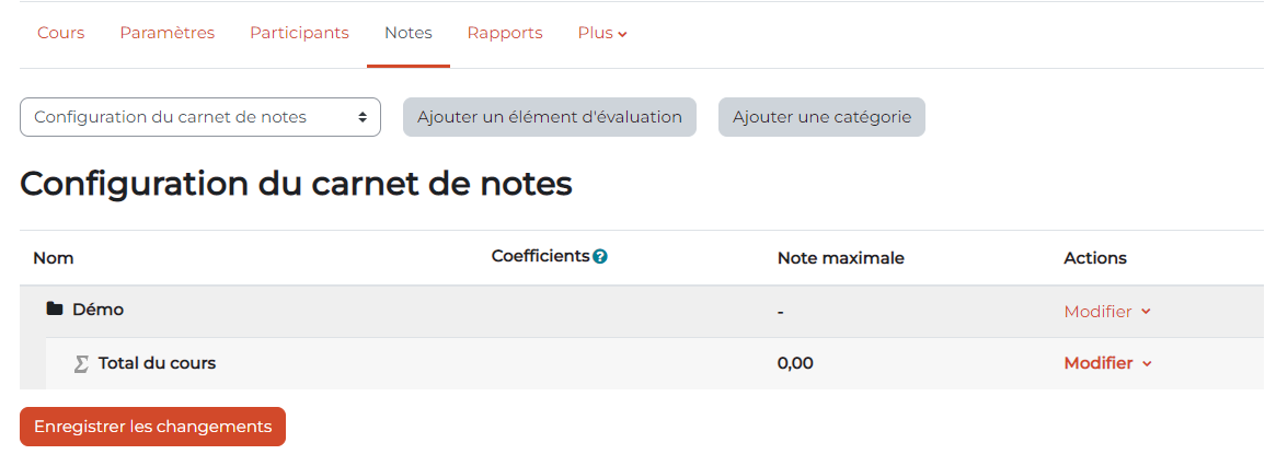 La structure du carnet de notes est une étape très importante dans le développement d’un cours sur Moodle. La configuration du carnet de notes peut être revue à tout moment durant la session. Ainsi, elle peut être améliorée ou modifiée en cours de session sans problème.